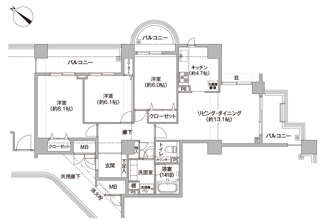 - ◆メーターボックス(MB)については専有面積に含まれません。